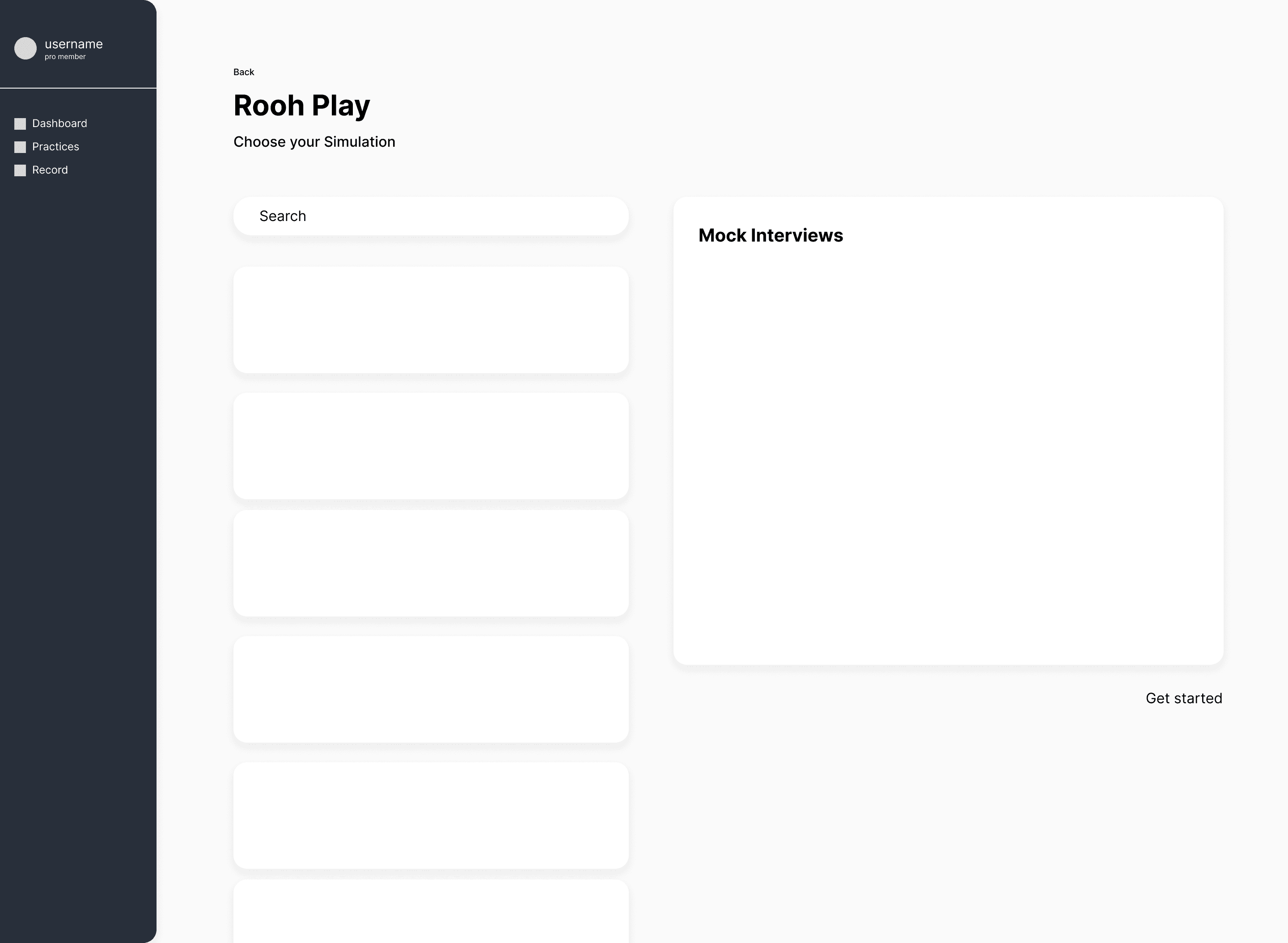 I focused on redesigning the recording and practice flows to provide a more intuitive and less complex experience. The main priority was for users to feel familiar with the software and comfortable with browsing through the different simulations.